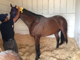Assistant trainer Alan Sherman knows that California Chrome is number one. Photo by Laurie Asseo.
