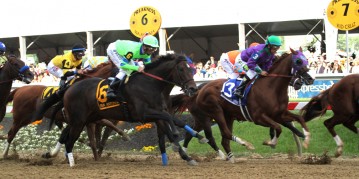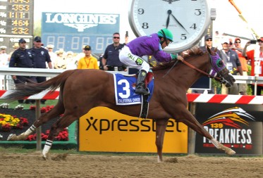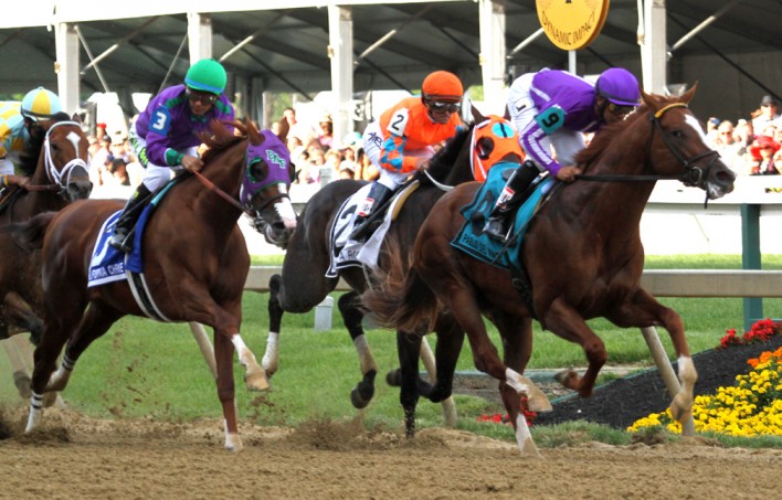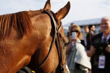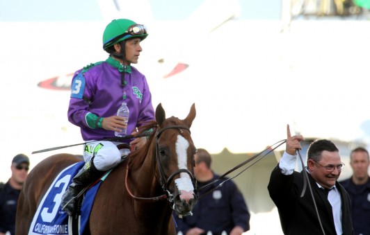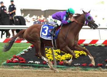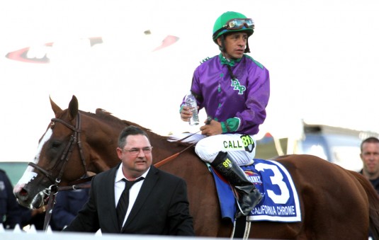 On to victory for California Chrome. Photo by Laurie Asseo.