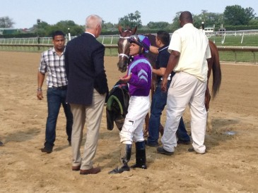 Trainer Rudy Rodriguez (right), rider Jose Ortiz, Belle Gallantey.
