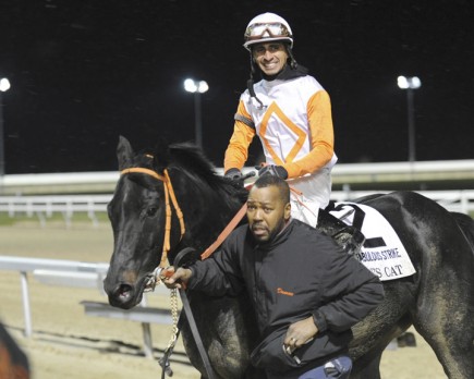 But on Saturday night, at chilly Penn National Race Course, the eight-year-old tried something entirely new. Under an astute ride by Julian Pimentel, Ben’s Cat stalked what was for a half-mile a four-way pace duel, angled outside nearing the lane, and romped to a 3 1/4-length victory over an accomplished field of older sprinters in the six furlong Fabulous Strike Handicap.