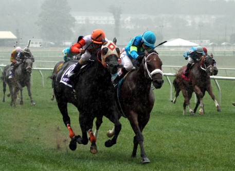In the Swatara Stakes, a $100,000 1 1/16 mile mile test for three-year-olds and up, Stormin Monarcho won the fourth stake of his career — and second straight — when he wore down game longshot Adirondack King to win by a length in 1:44.40. Stormin Monarcho, the 6-5 favorite, was never far back under Jevian Toledo before angling out in the lane to run down his rival. Trained by David Jacobson for himself and Lawrence Roman, the four-year-old Stormin Monarcho has now won nine of 28 starts and earned $412,281. A pair of local runners — Van Persie and Twin Engine — were sent off at more than 100-1 by bettors; they finished fourth and fifth, respectively…