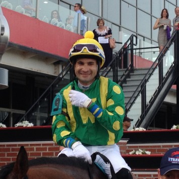 Of course, his horse wasn’t so hard to find; he was the one on the lead most of the way and, after repelling a stiff challenge from Noteworthy Peach, the one under the wire first.