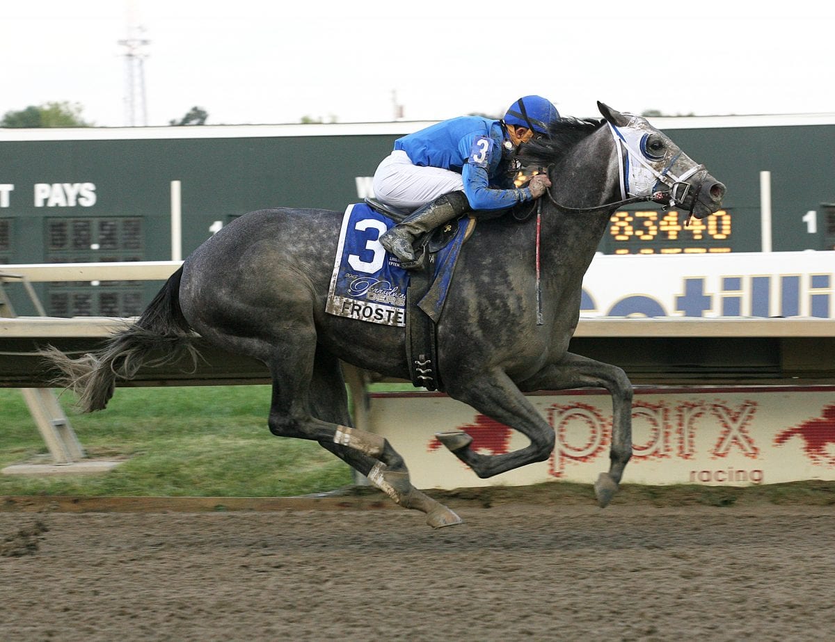 Frosted #3 with Joel Rosario riding won the $1,000,000 Grade II Pennsylvania Derby at Parx Racing in Bensalem, Pennsylvania on Saturday September 19, 2015. Second place finisher was Iron Fist #4 and Mike Smith Photo By Barbara Weidl/EQUI-PHOTO