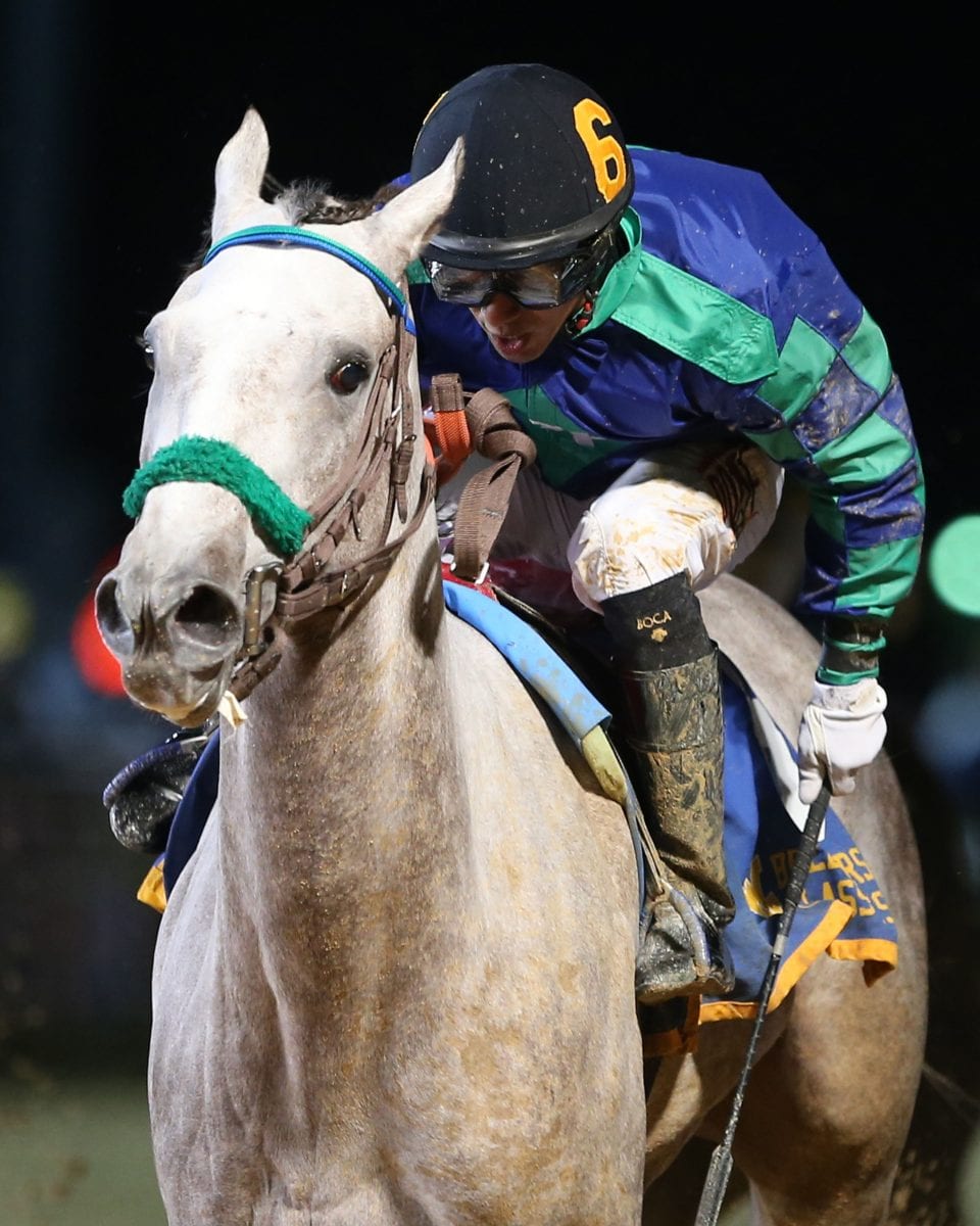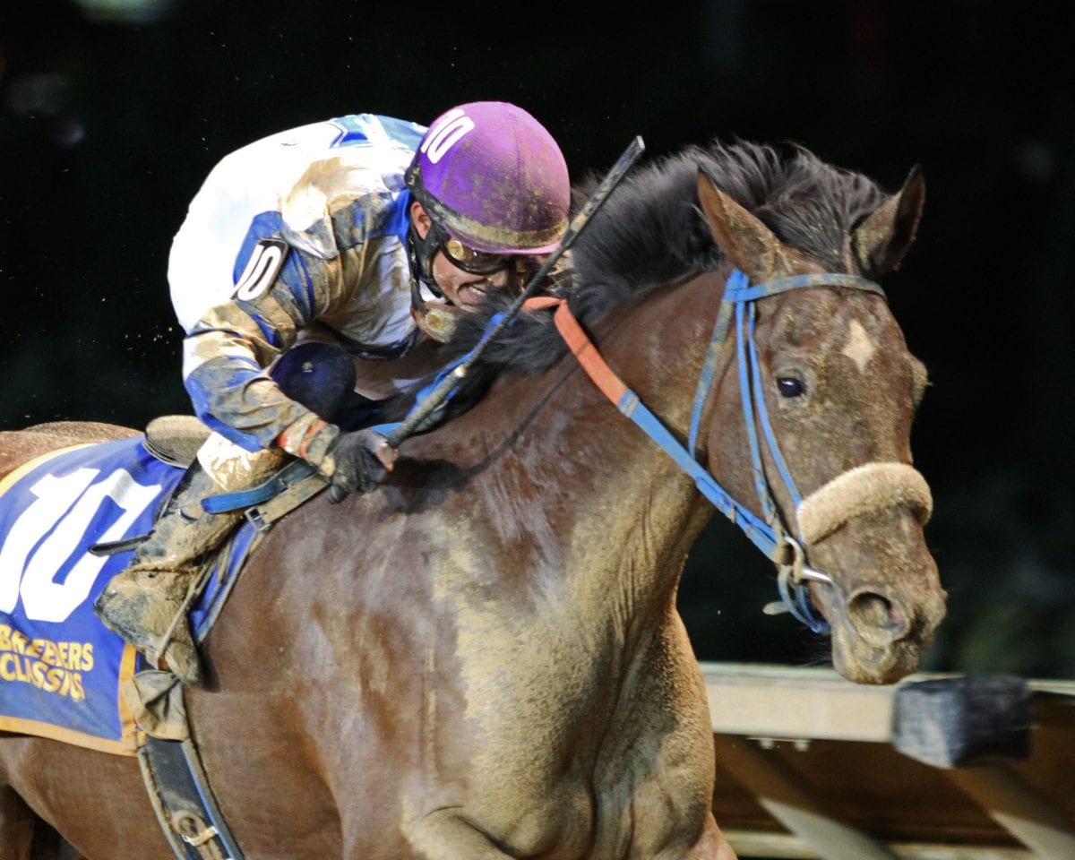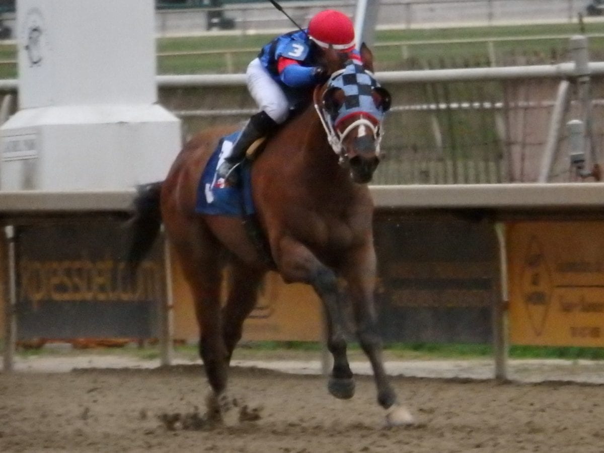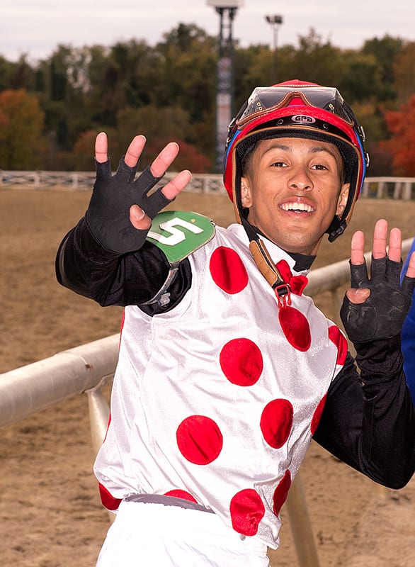 Victor Carrasco’s first win since returning from injury came in the Maryland Million Turf aboard Phlash Phelps. Photo by The Racing Biz.