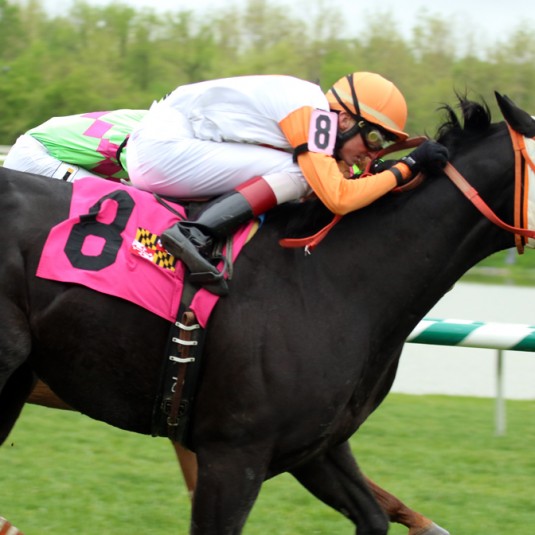 Ben’s Cat wins the 2016 Jim McKay Turf Sprint. Photo by Laurie Asseo.