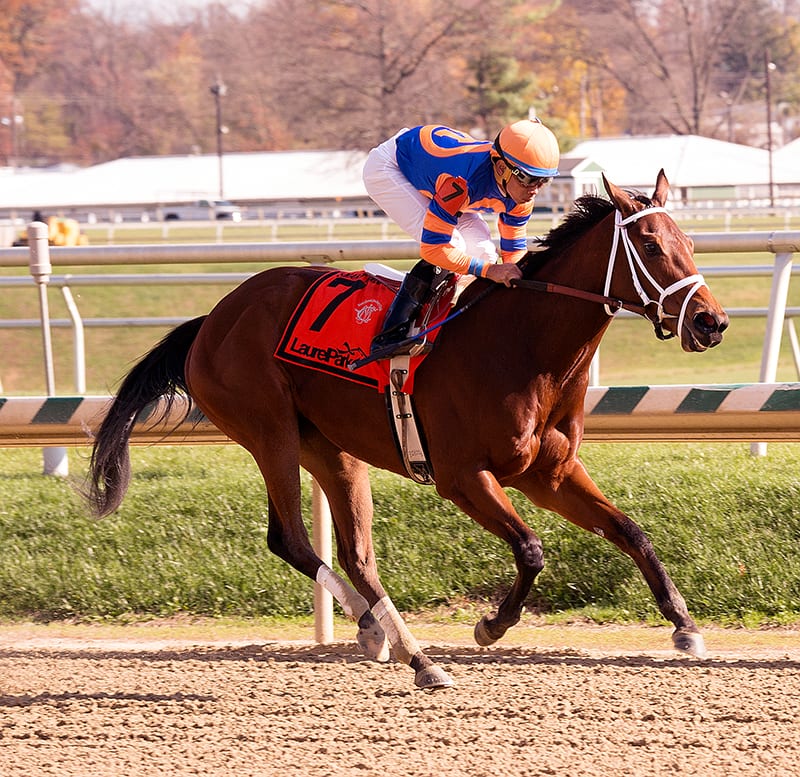 Lost Raven won the Smart Halo at Laurel Park last November. Photo by Jim McCue, Maryland Jockey Club.