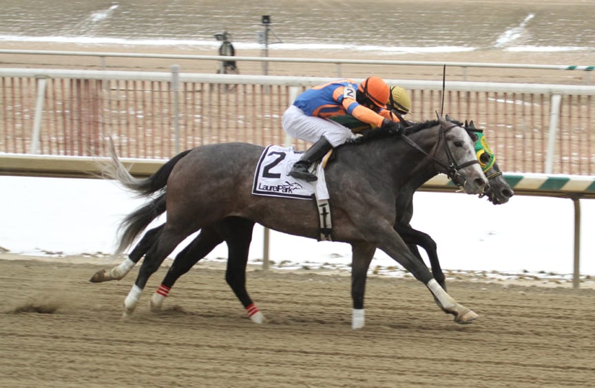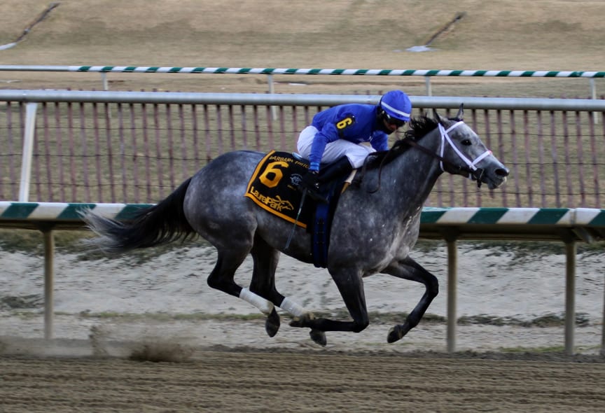 Majestic Reason, with Trevor McCarthy up, won the G3 Barbara Fritchie Stakes. Photo by Laurie Asseo.