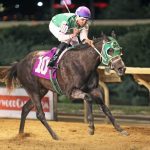The three-year-old Silky Serena, beating her elders in the Fancy Buckles, now has three wins, two in stakes company, from five starts with earnings of $119,418. A filly by Fiber Sonde, she was bred and is owned by McKee’s wife Cyndy McKee and last month had earned her first stakes score in the It’s Binn Too Long.