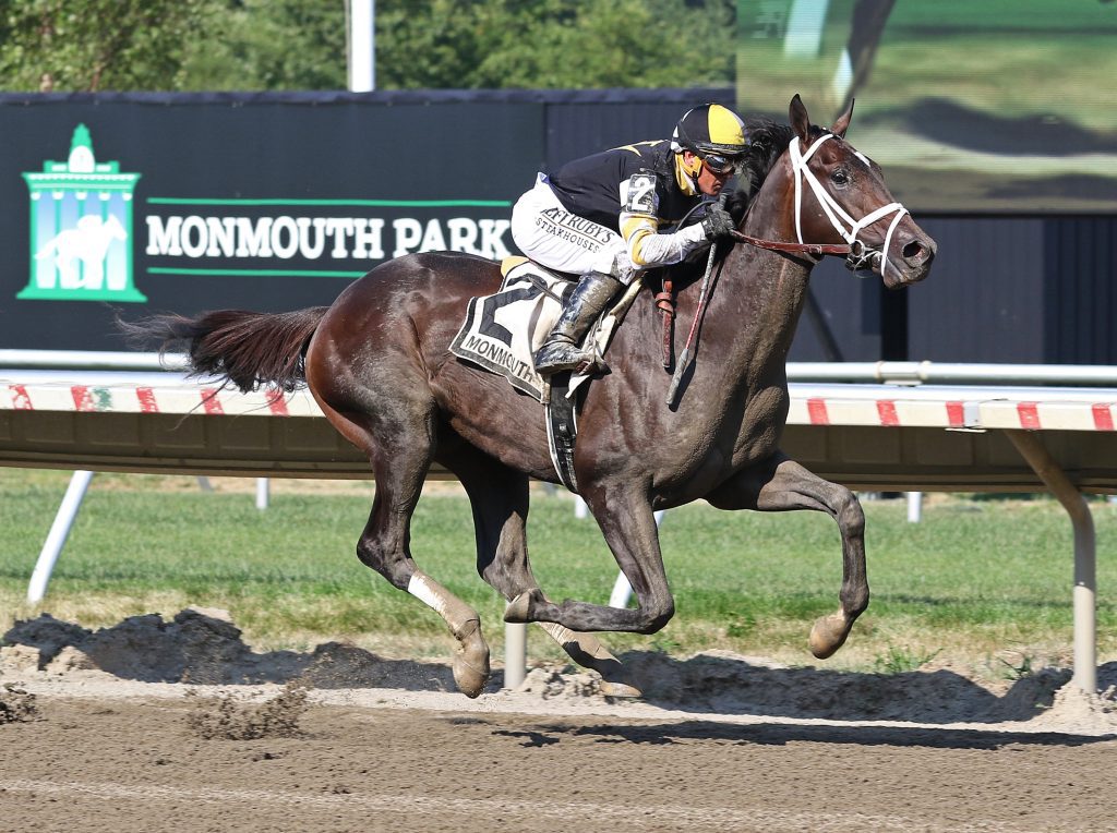 SECOND STAR: HE’SPUREGOLD. Sunday’s New jersey Thoroughbred Festival of Racing was co-headlined by the Charles Hesse III Handicap at 1 1/16 miles on the dirt. In his dirt debut, He’spuregold went off as the 9-5 favorite, and lived up to expectations with a 2 1/2-length win. He pressed early leader Prendimi from the outside, then finally took firm control as they entered the stretch. Although Golden Brown and Irish Meadow closed in late, He’spuregold opened up enough distance on the others and was clear in the end. A three-time stakes winner with career earnings of $315,720, he’s owned by Roseland Farm Stable, trained by Kelly Breen, and ridden by Paco Lopez.