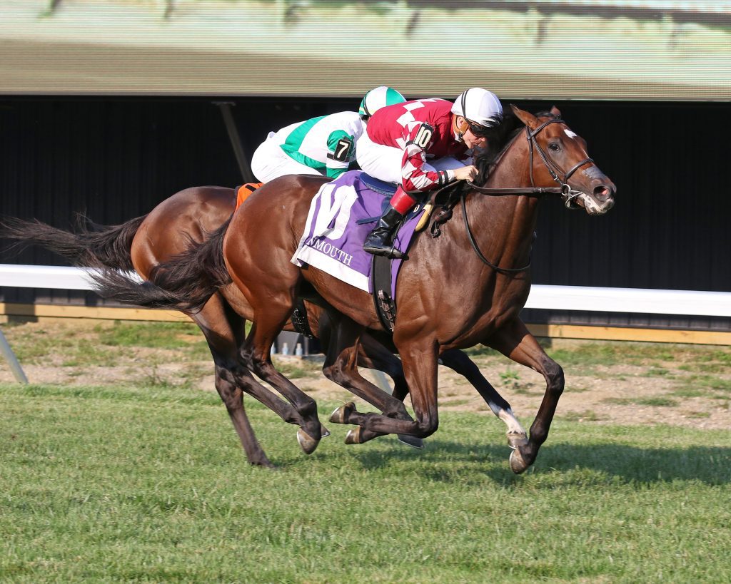 FIRST STAR: WEBSLINGER. The feature on Saturday was one of the richest races of the season: the $500,000 Nownownow Stakes for 2-year-olds on the grass. Mark Casse sent a pair to the Jersey Shore, including Webslinger, who was looking for his first career victory. He achieved his objective with a half-length win. He moved four-wide in the stretch under Dylan Davis, in from New York for the mount, and got up late over odds-on choice Oxymore. Jose Ortiz also came from New York to ride the heavy Chad Brown-trained favorite, but settled for second. The winner ran a mile in 1:35.09, for owner D.J. Stable LLC.