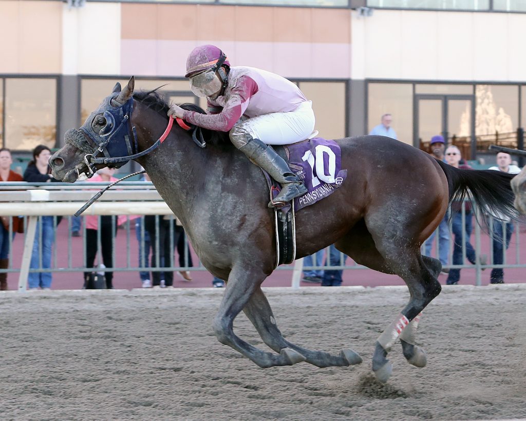 FIRST STAR: VEESON. Tuesday’s feature at Parx was the Jump Start Stakes for Pennsylvania-bred sprinters. Vesson, sent off at 21-1 in the 12-horse field, rallied from far off the pace and got up to nail Prince of Rain on the wire and win by a head. The Chuck Russo-homebred 3-year-old son of Il Villano rapidly climbed the class ladder, having broken his maiden at eighth asking on August 21. Next out, he beat first-level allowance optional claiming foes on September 18, and followed that performance with a victory here. He ran seven furlongs in 1:26.58 for trainer Ernesto Padilla-Preciado and rider Dexter Haddock.