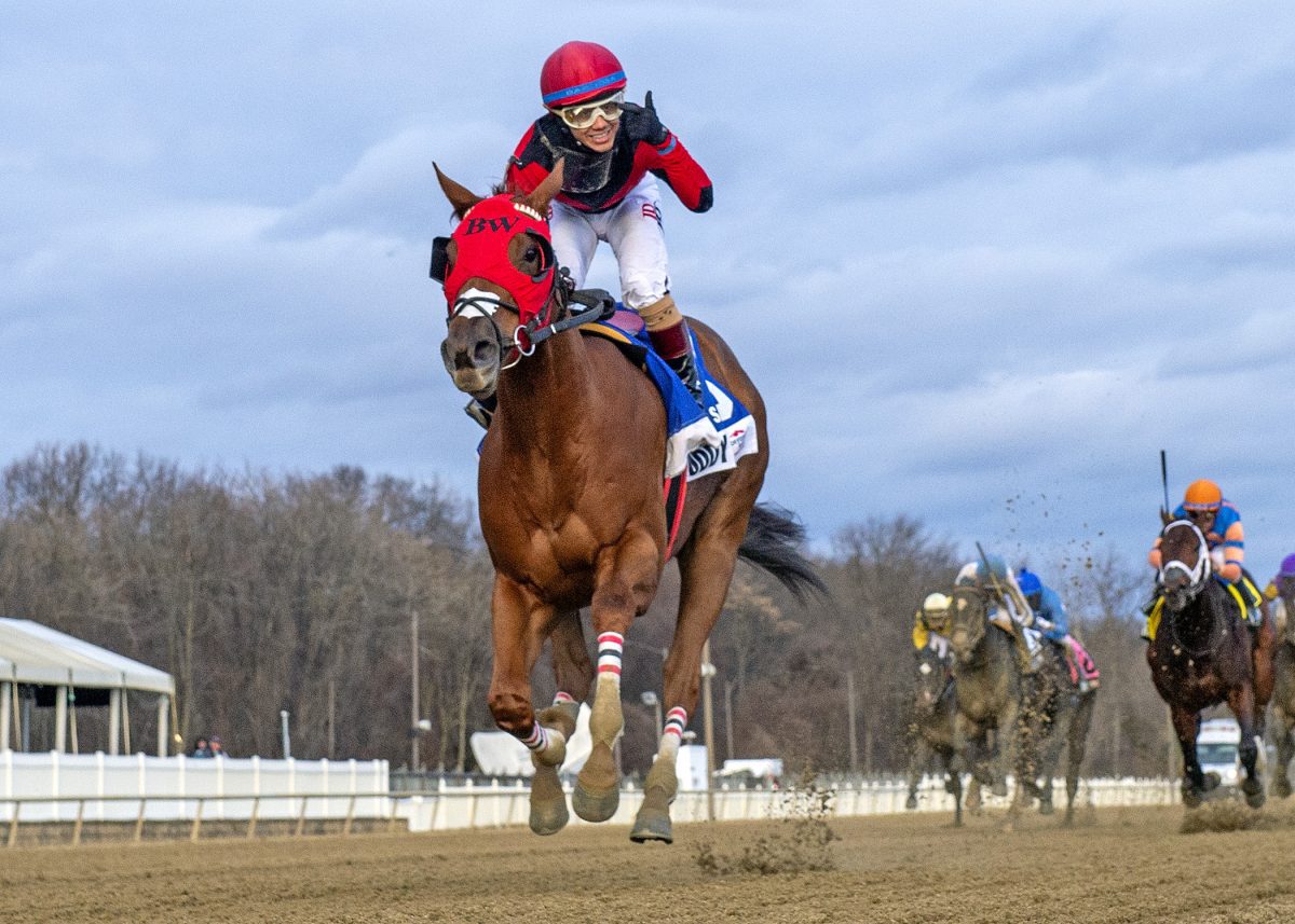 SECOND STAR: CARMELINA. One race prior at Laurel on Saturday, Carmelina won the Gin Talking Stakes in similar gate-to-wire fashion. The Butch Reid-trained filly broke alertly under Sheldon Russell and quickly made the early lead. Favored Cap Classique gave her a challenge at the top of the stretch, but Carmelina held them all at bay and won by two lengths. She’s a three-time stakes winner, having also taken the Keswick Stakes at Colonial Downs and the Shamrock Rose Stakes at Penn National. She’s owned by Cash is King LLC and LC Racing LLC.