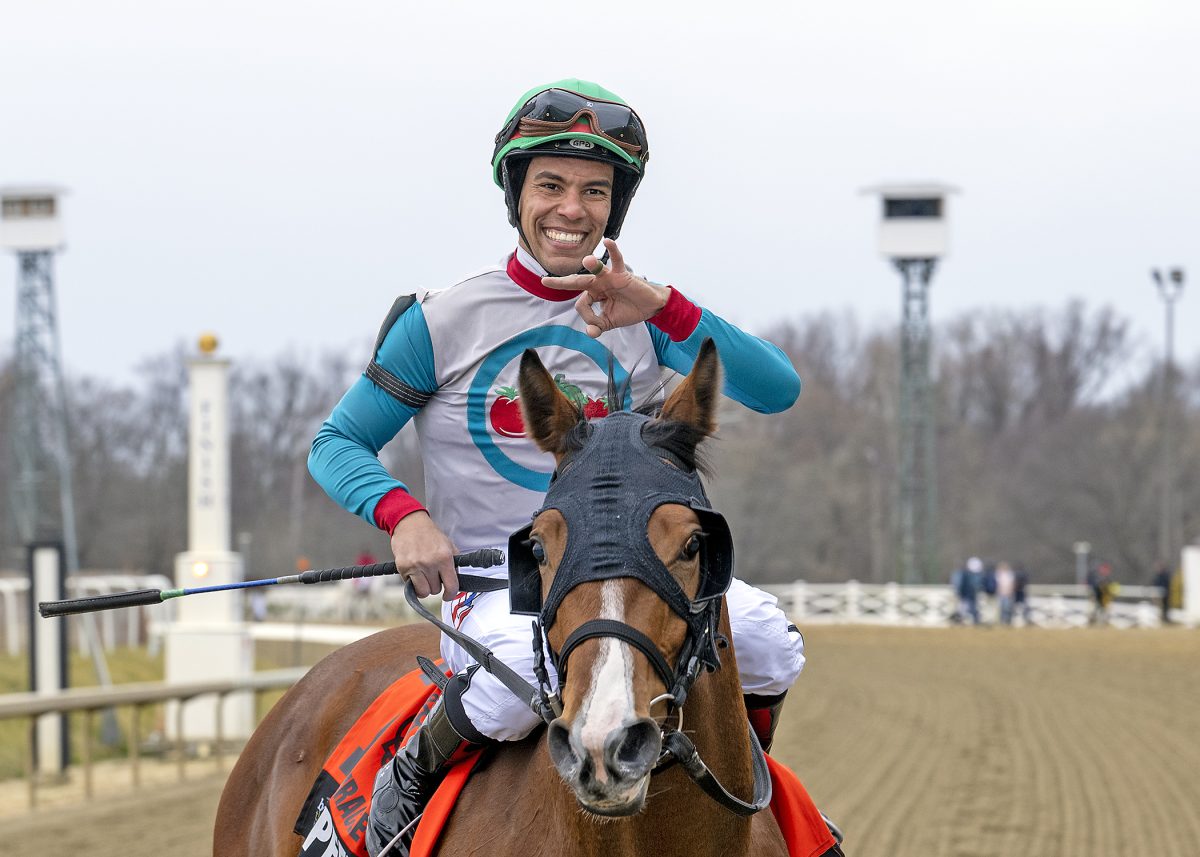 SECOND STAR: MISS HARRIETT. One race prior to the Miracle Wood, 3-year-old fillies did battle in the seven-furlong Wide Country Stakes. Miss Harriett, who won the Maryland Million Lassie at 62-1 on debut last fall, also showcased her speed and won by three-quarters of a length. She made her way to the front up the backstretch, opened up a clear lead on the turn, and held off the late rally of Determined Driver to win it. She’s now 3-for-4 lifetime with two stakes wins and earnings of $151,810. She’s a Maryland-bred homebred for David Baxter, by Murmur Farm’s Blofeld, and is trained by Brandon McFarlane and ridden by Rodriguez.