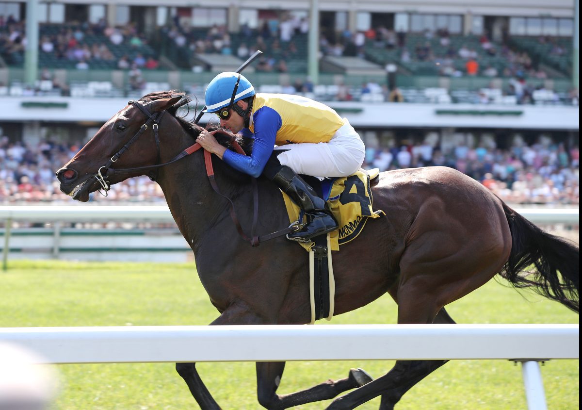 SECOND STAR: DATAMAN. One day prior at Monmouth, older males did battle in the Cliff Hanger Stakes, also at 1 1/16 miles on grass. Coming in off a win in the Henry S. Clark Stakes in his prior outing, Dataman added another notch to his belt in the Cliff Hanger, He rallied from last with a strong, wide move on the final turn and chased down longtime leader There Are No Words to win by a length. He’s now a three-time stakes winner lifetime, having previously won the Bald Eagle Derby last year in addition to his two stakes wins this year. This Wertheimer and Frere homebred is trained by Graham Motion and ridden by Jorge Ruiz.