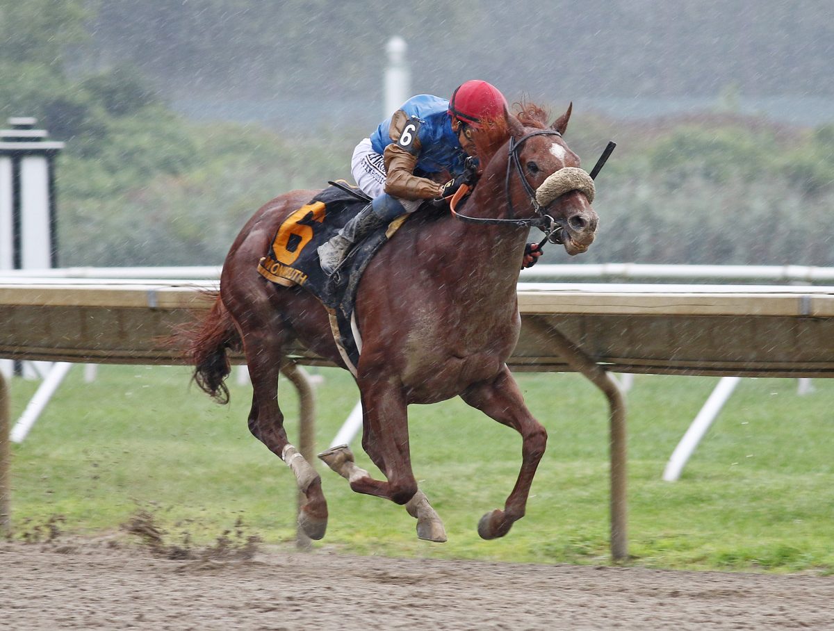 SECOND STAR: SMITHWICK’S SPICE. One race later, grass sprinters did battle in the Select Stakes. Jersey-bred Smithciwkc’s Spice, coming off a win against Delaware-certified allowance foes, pulled off a 25-1 upset. He battled for the early lead with Xy Speed, wrestled control and pulled clear int he stretch, and held off the late surges of favorites Nothing Better and Senbei to prevail by a nose. He’s now a two-time stakes winner on the year, having previously wont he Leinster Turf Dash in February at Tampa Bay Downs. The New Spice Stable homebred gelding is trained by Doug Nunn and was ridden by Jorge Gonzalez.