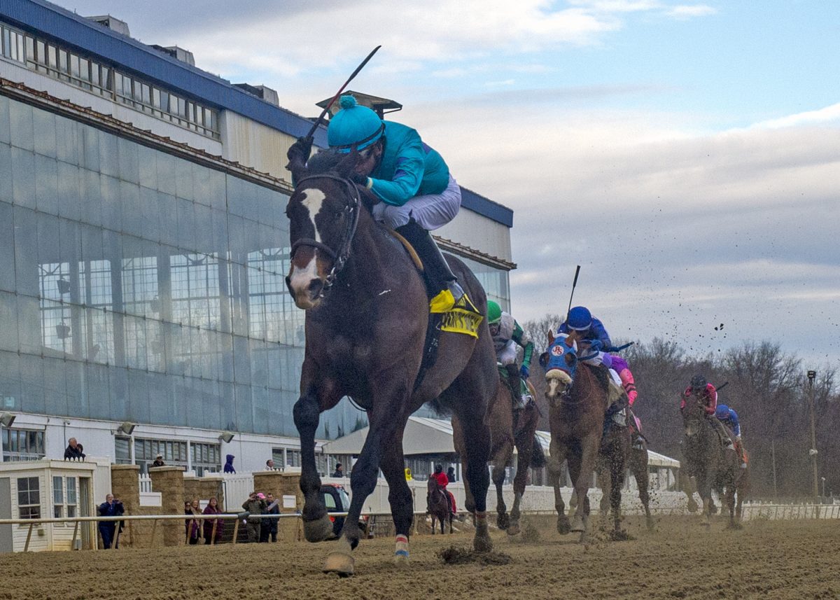 SECOND STAR: PRINCE OF JERICHO. Two races later, local sprint veteran Prince of Jericho returned to the winner’s circle with a 2 3/4-length win in the Fire Plug Stakes. Sent off as the 6-5 favorite from the inside post, he dueled with longshot No Easy Days, then put him away, shook off another challenge from On the Mark, and drew off for the victory. He’s now 7-for-19 lifetime, and 7-for-15 at Laurel Park, with earnings of $507,450. Sheldon Russell was up for owners Michael Dubb and Morris Bailey and trainer Brittany Russell.